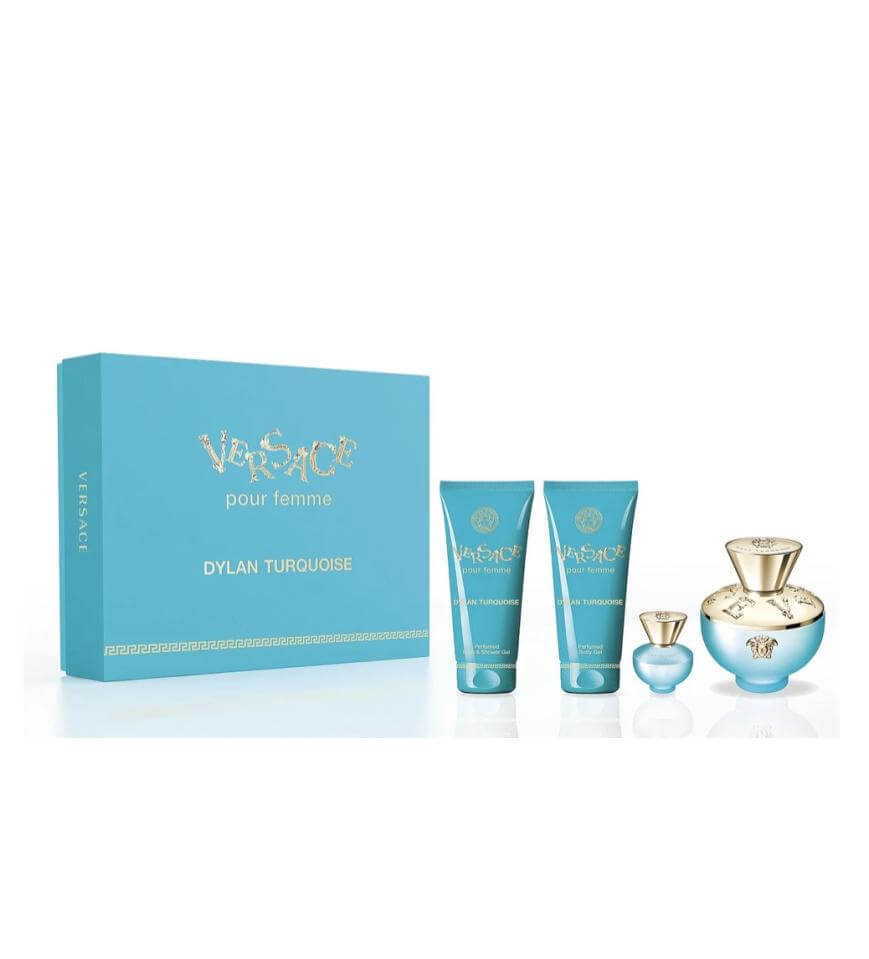 Versace Pour Femme Dylan Turquoise de Versace es una fragancia de la familia olfativa Floral Frutal para Mujeres. Las Notas de Salida son limón, mandarina y pimienta rosa; las Notas de Corazón son guayaba, fresia, grosellero negro y jazmín; las Notas de Fondo son Clearwood, almizcle y cedro. Este fresco y sensual perfume es creado a partir de una jugosa composición cítrica que fusiona el delicado aroma dulce de las mandarinas, ácidas sensaciones de limones y una impresión picante y dulce de la pimienta rosa, acompañado de un sugestivo y tropical cóctel frutal de guayaba, jazmín y fresia, culminando con una cálida fusión de cedro y almizcles. Evoca el placer que se vive en una isla paradisíaca y la sensualidad que transmite la alegría de una mujer que se desconecta para ser simplemente ella, utilizando alegres y tentadores frutos y flores exóticas!!!!