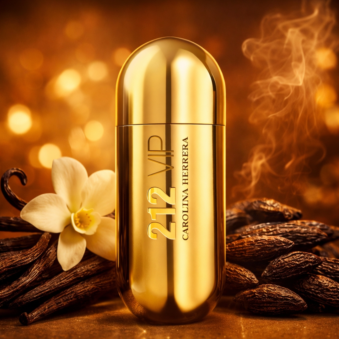 212 VIP de Carolina Herrera es una fragancia de la familia olfativa Oriental Vainilla para Mujeres. Las Notas de Salida son ron, maracuyá; las Notas de Corazón son gardenia, almizcle; las Notas de Fondo son vainilla y haba tonka. 212 VIP es una fragancia que captura el pulso de la noche y el magnetismo de una mujer que siempre es invitada principal, abriendo con el acorde embriagador de ron y la jugosidad exótica del maracuyá que marcan una presencia audaz y provocadora; en el corazón, la gardenia despliega una feminidad luminosa y elegante, mientras el fondo se vuelve cálido y envolvente con almizcle sedoso, vainilla cremosa y el toque adictivo de la haba tonka, creando una estela sofisticada, sensual y segura, propia de quien no sigue tendencias, las impone bajo el brillo exclusivo de 212 VIP!!
