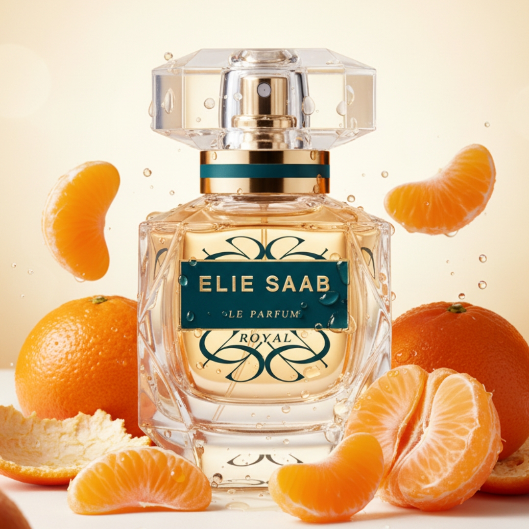 Le Parfum Royal de Elie Saab es una fragancia de la familia olfativa Chipre Floral para Mujeres. La Nota de Salida es mandarina; las Notas de Corazón son rosa turca, rosa de Bulgaria, neroli; las Notas de Fondo son pachulí, ámbar, vainilla y sándalo. Le Parfum Royal se presenta como una joya de alta perfumería donde la mandarina ilumina la apertura con un brillo elegante y refinado, dando paso a un corazón majestuoso de rosa turca y rosa de Bulgaria que expresan una feminidad poderosa y aristocrática; el neroli aporta un matiz luminoso y distinguido que realza la composición, mientras el pachulí sostiene la fragancia con profundidad y carácter, el ámbar envuelve la piel con un resplandor cálido y seductor, la vainilla suma una dulzura cremosa y adictiva perfectamente equilibrada, y el sándalo cierra con una estela suave, envolvente y persistente, afirmando el carácter noble y eterno de Le Parfum Royal!!
