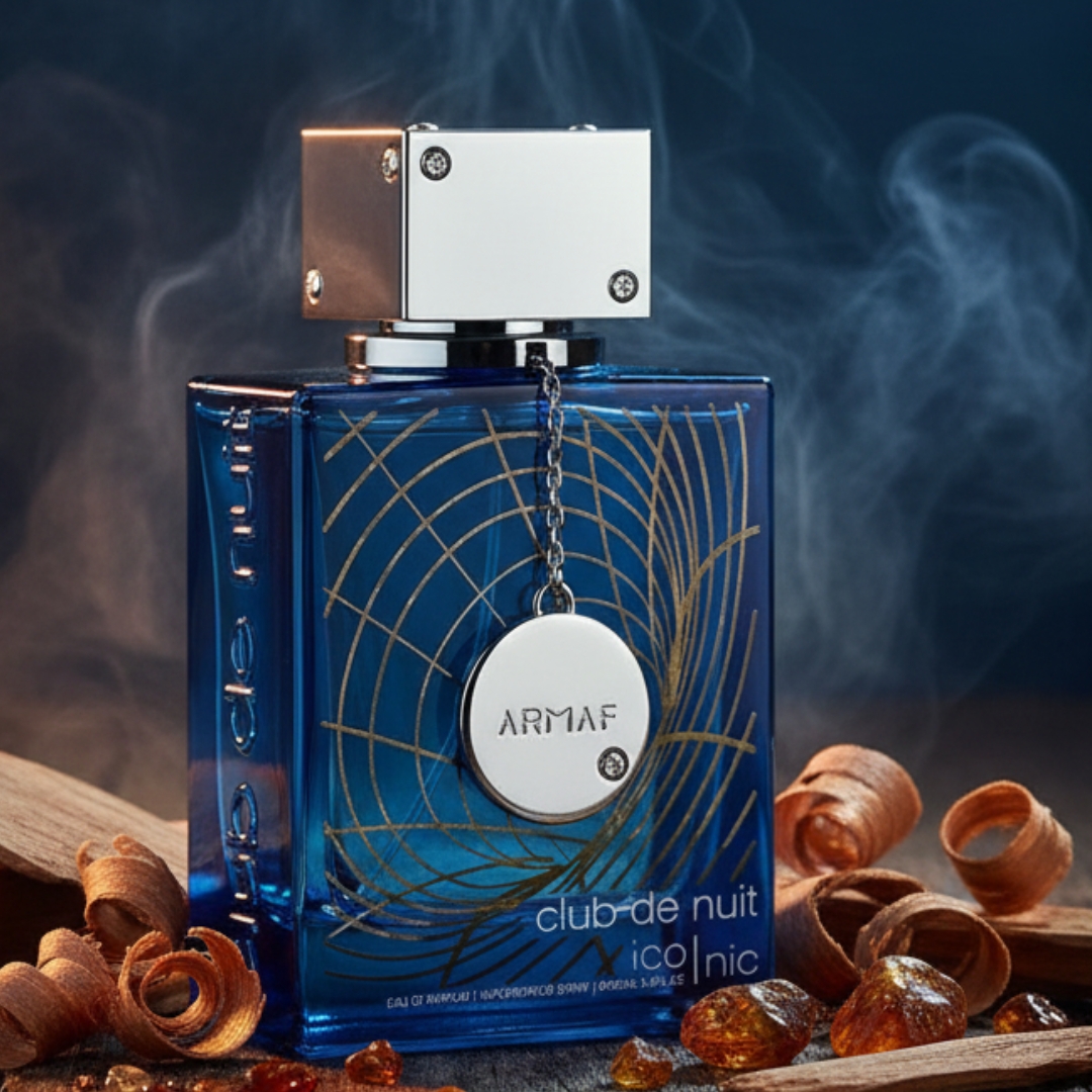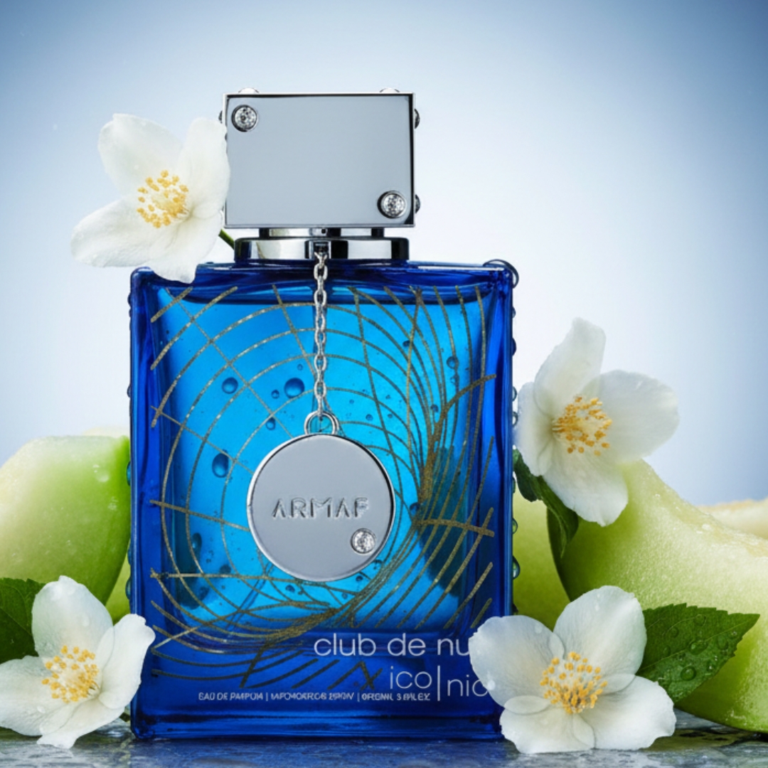 Club de Nuit Blue Iconic de Armaf es una fragancia de la familia olfativa Amaderada Aromática para Hombres. Las Notas de Salida son pomelo, limón, menta, pimienta rosa, cilantro; las Notas de Corazón son jengibre, melón, nuez moscada, jazmín; las Notas de Fondo son notas amaderadas, incienso, sándalo, ámbar, cedro, pachulí y ládano. Club de Nuit Blue Iconic es la expresión de una masculinidad moderna que domina la noche con elegancia magnética; la salida vibrante de pomelo y limón se entrelaza con la menta fresca y la pimienta rosa, creando un impacto luminoso y audaz, mientras el cilantro y el jengibre aportan un matiz especiado que late con energía contenida y el melón añade un contraste jugoso y sofisticado; en el corazón, la nuez moscada y el jazmín construyen una tensión refinada y seductora que evoluciona hacia un fondo profundo de notas amaderadas e incienso, envolviendo la piel con carácter; el sándalo y el cedro consolidan su estructura firme y segura, y el ámbar, el pachulí y el ládano sellan esta creación con una estela intensa, oscura y adictiva que honra su nombre: Blue Iconic, una firma inolvidable que se impone sin esfuerzo!!