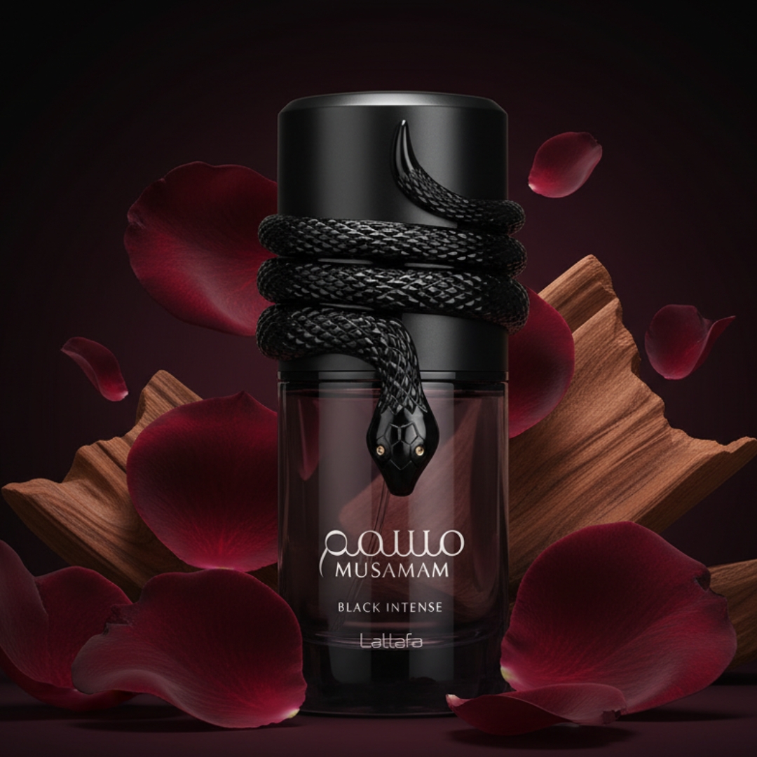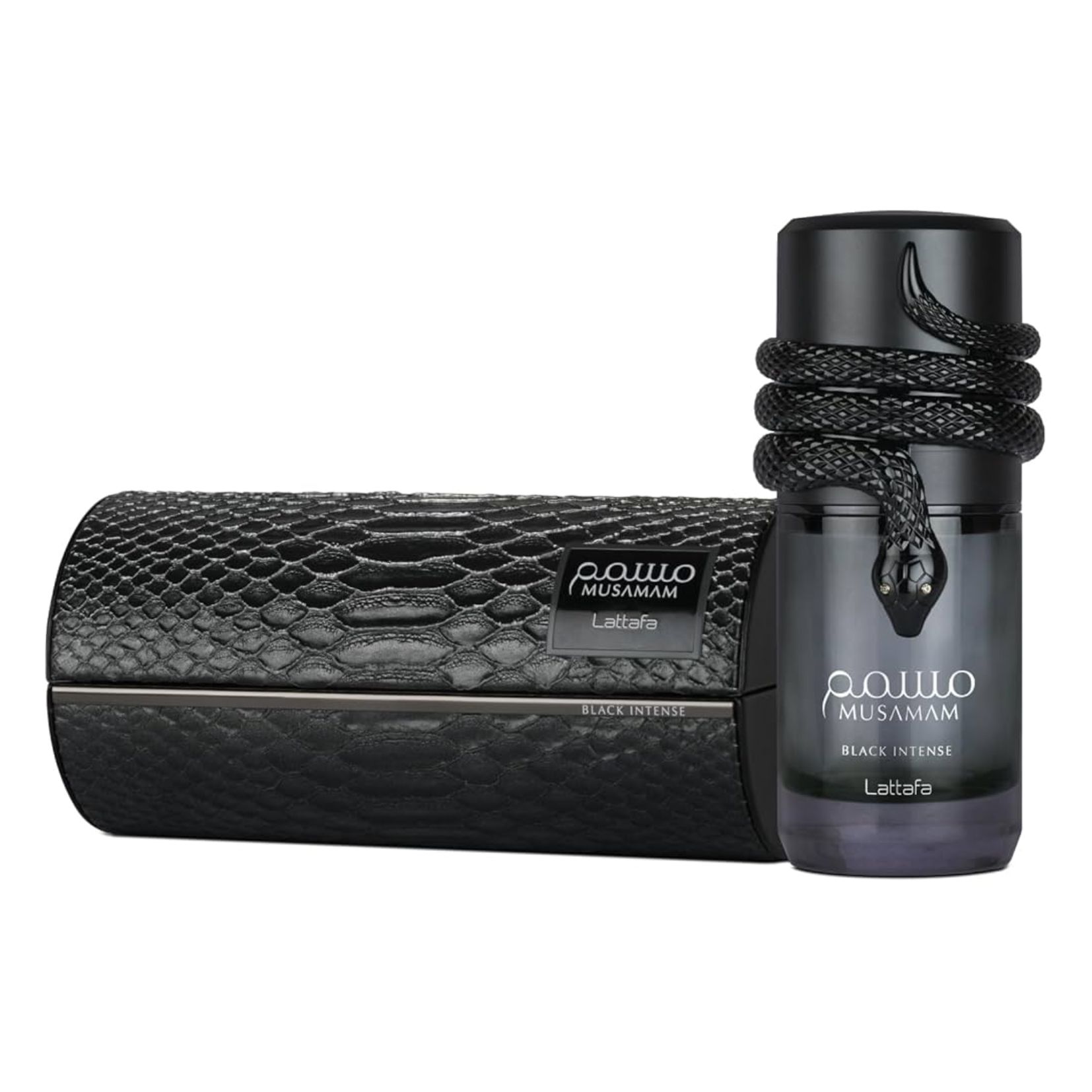 Musamam Black Intense de Lattafa es una fragancia de la familia olfativa Amaderada Aromática para Hombres y Mujeres. Esta fragancia es nueva, se lanzó en 2025. Las Notas de Salida son lavanda, nuez moscada, salvia, bergamota; las Notas de Corazón son Rosyfolia, cedro, geranio, Mahonial; las Notas de Fondo son Cocoapulse™, haba tonka, arce, Ambrofix™, pachulí. Musamam Black Intense es una fragancia que impone presencia desde el primer instante, profunda y magnética como su nombre lo promete, con una apertura aromática de lavanda, salvia y bergamota tensada por la nuez moscada y la Rosyfolia que aportan carácter y misterio. En su evolución, el corazón floral moderno de geranio y Mahonial se envuelve en la cremosidad adictiva de Cocoapulse™, creando un contraste elegante y provocador. El cedro aporta estructura y nobleza, marcando una silueta firme y refinada sobre la piel. A medida que avanza, el haba tonka y el arce suman una dulzura oscura, medida y sofisticada. Ambrofix™ intensifica la profundidad con un acorde ambarado limpio y envolvente. El pachulí cierra la composición con un trazo terroso y sensual que prolonga la estela. Musamam Black Intense es un unisex intenso, nocturno y seductor, diseñado para quienes dominan el arte de la presencia silenciosa!!