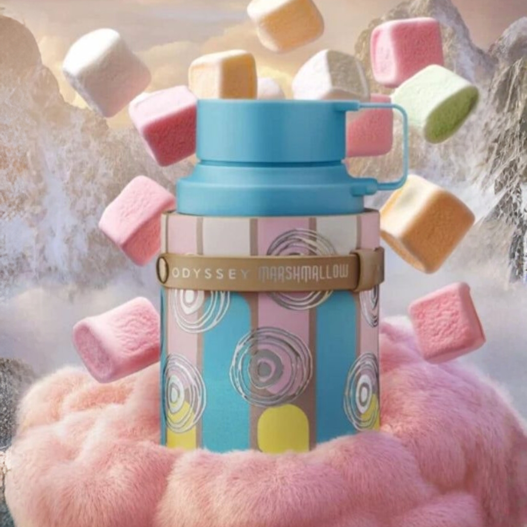 Odyssey Marshmallow de Armaf es una fragancia de la familia olfativa Floral Frutal Gourmand para Hombres y Mujeres. Esta fragancia es nueva, se lanzó en 2025. Las Notas de Salida son coco, manzana, limón, peonía, lirio de los valles; las Notas de Corazón son malvavisco, fresa, chabacano, frambuesa, durazno, flor de azahar del naranjo; las Notas de Fondo son Queso mascarpone, praliné, vainilla, almizcle, haba tonka y ámbar. Odyssey Marshmallow despliega un viaje irresistible donde el coco cremoso y el limón chispeante abren paso a una fantasía luminosa, tan etérea como su nombre lo promete. La manzana jugosa se entrelaza con peonía y lirio de los valles, creando un corazón floral-frutal que late con suavidad envolvente. El malvavisco se derrite con fresa, frambuesa y durazno, generando una nube adictiva que invita a perderse. El chabacano aporta un matiz dorado que acaricia la piel con una dulzura sofisticada. La flor de azahar del naranjo aporta pureza radiante que equilibra la voluptuosidad gourmand. El queso mascarpone y el praliné suman un carácter goloso y cremoso, casi pecaminoso. La vainilla, el almizcle, la haba tonka y el ámbar sellan este Odyssey Marshmallow con una estela cálida, aterciopelada y profundamente memorable!!