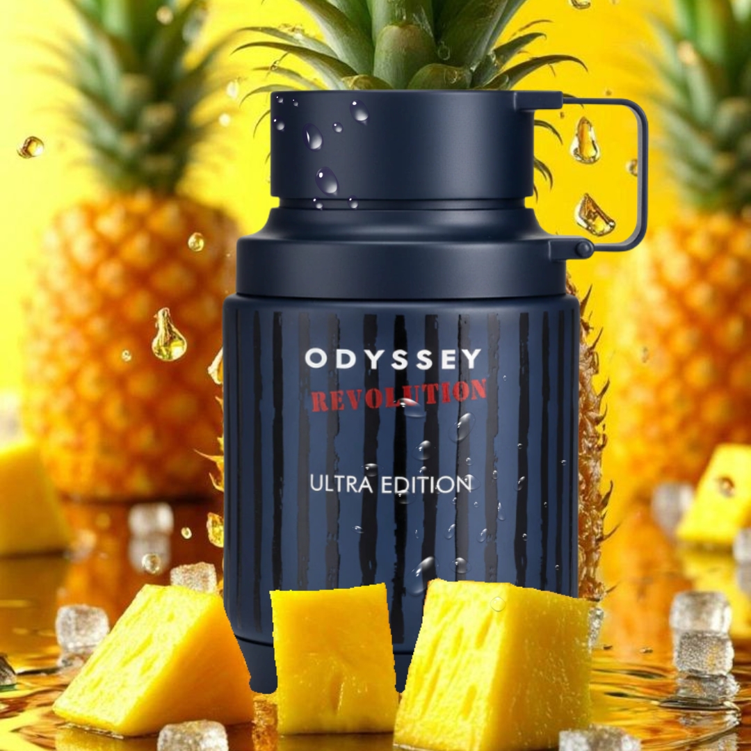 Odyssey Revolution de Armaf es una fragancia de la familia olfativa Aromática Frutal para Hombres y Mujeres. Esta fragancia es nueva, se lanzó en 2025. Las Notas de Salida son piña, grosellas negras, naranja sanguina, salvia; las Notas de Corazón son praliné, vainilla, ciruela, cardamomo; las Notas de Fondo son haba tonka y pachulí. Odyssey Revolution irrumpe como un estallido atrevido donde la piña y las grosellas negras marcan el inicio de un cambio irresistible, vibrante y desafiante. La naranja sanguina aporta un giro audaz que enciende la piel, mientras la salvia eleva la composición con un magnetismo casi indomable. El praliné y la vainilla trazan una estela envolvente que seduce con una dulzura oscura y adictiva. La ciruela añade un matiz jugoso que profundiza el carácter rebelde de esta creación. El cardamomo despierta un fuego aromático que se funde con la cremosidad cálida del haba tonka. Finalmente, el pachulí ancla la fragancia con un eco sofisticado y nocturno, proclamando con firmeza la verdadera revolución aromática que define su nombre!!