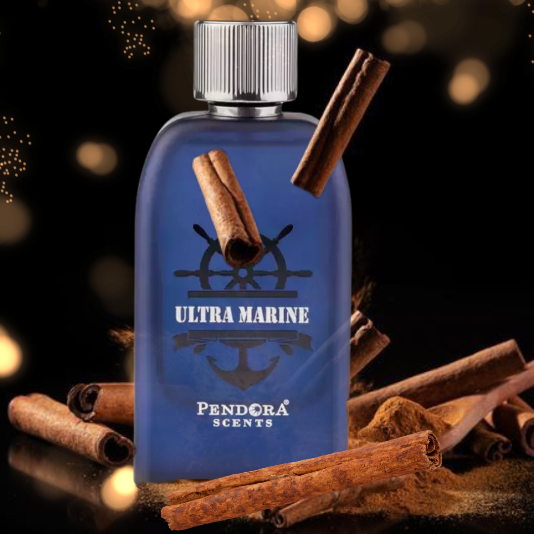 Ultra Marine Pendora de Paris Corner es una fragancia de la familia Olfativa oriental Fougère para Hombres. Notas de Salida: Pera, lavanda, menta, bergamota; Notas de Corazón: Canela, esclarea, alcaravea; Notas de Fondo: Vaina de vainilla negra, ámbar, pachulí y cedro. Ultra Marine emerge con la jugosidad fresca de la pera y el brillo aromático de la bergamota, evocando la profundidad azul de un océano indomable. La lavanda aporta una elegancia limpia que se mezcla con la frescura vibrante de la menta, creando un impulso masculino tan revitalizante como una brisa marina. La canela introduce un matiz cálido y provocador que intensifica su magnetismo. La esclarea y la alcaravea añaden un toque herbal y sutilmente especiado que refuerza su carácter aventurero. La vaina de vainilla negra envuelve la composición con una sensualidad oscura y adictiva. El ámbar aporta una base luminosa y poderosa, subrayando la fuerza interior de quien lo lleva. Finalmente, el pachulí y el cedro fijan la fragancia con una estela profunda y confiada, haciendo de Ultra Marine un tributo a la masculinidad que desafía las mareas!!