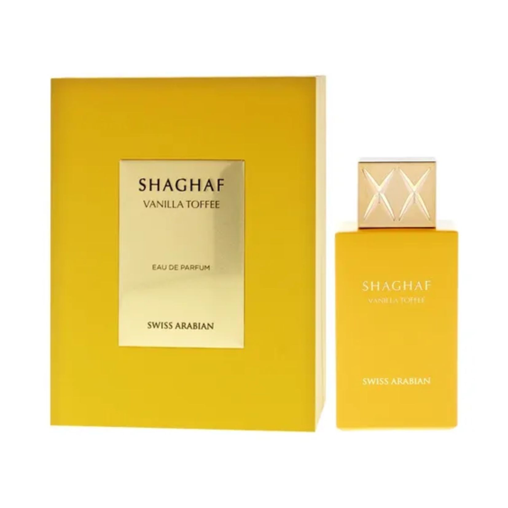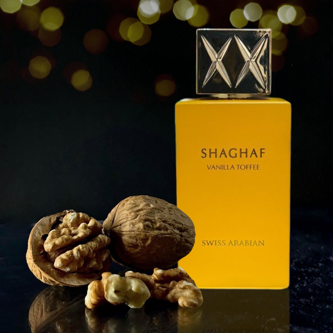 Shaghaf Vanilla Toffee de Swiss Arabian es una fragancia de vainilla oriental para Hombres y Mujeres. Sus notas de salida son caramelo, café; sus notas de corazón son vainilla, nuez, dátiles, leche, cardamomo; sus notas de fondo son azúcar moreno, vainilla de Madagascar, caviar de vainilla, haba tonka, benjuí, notas amaderadas y almizcle. Shaghaf Vanilla Toffee es una declaración de deseo envuelta en dulzura y magnetismo. El caramelo y el café despiertan una adicción inmediata, como un beso cálido en la penumbra. La vainilla de Madagascar y el caviar de vainilla derriten la piel con su cremosidad intensa y provocadora. Los dátiles y la leche aportan una textura aterciopelada, voluptuosa, que invita al deleite. El cardamomo y la nuez equilibran con un toque exótico y sensual, elevando la composición a un lujo oriental irresistible. El benjuí y la haba tonka sellan la mezcla con un susurro ambarado y envolvente. Shaghaf, pasión absoluta, convierte la vainilla en una obsesión que se graba para siempre!!