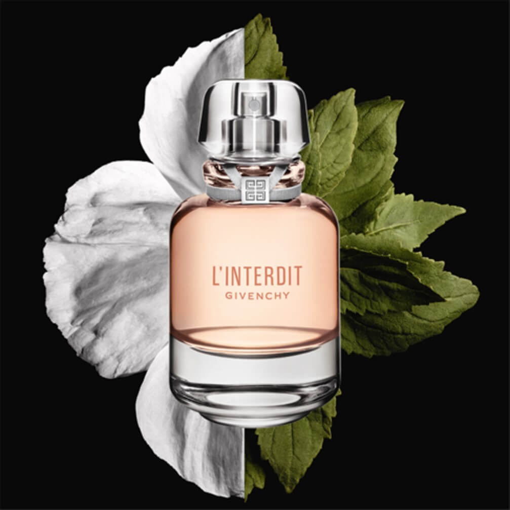 L´Interdit Eau de Toilette de Givenchy es una fragancia de la familia olfativa Almizcle Floral Amaderado para Mujeres. La Nota de Salida es amapola; las Notas de Corazón son nardos, flor de azahar del naranjo y almizcle; las Notas de Fondo son pachulí y vetiver. Esta delicia olfativa abre Blanca impregnada de luz. La alianza demoledora de Azahar y Nardo se ve interrumpida por una apasionante paradoja floral. Una flor blanca voluptuosa que expone un corazón oscuro e hipnótico.