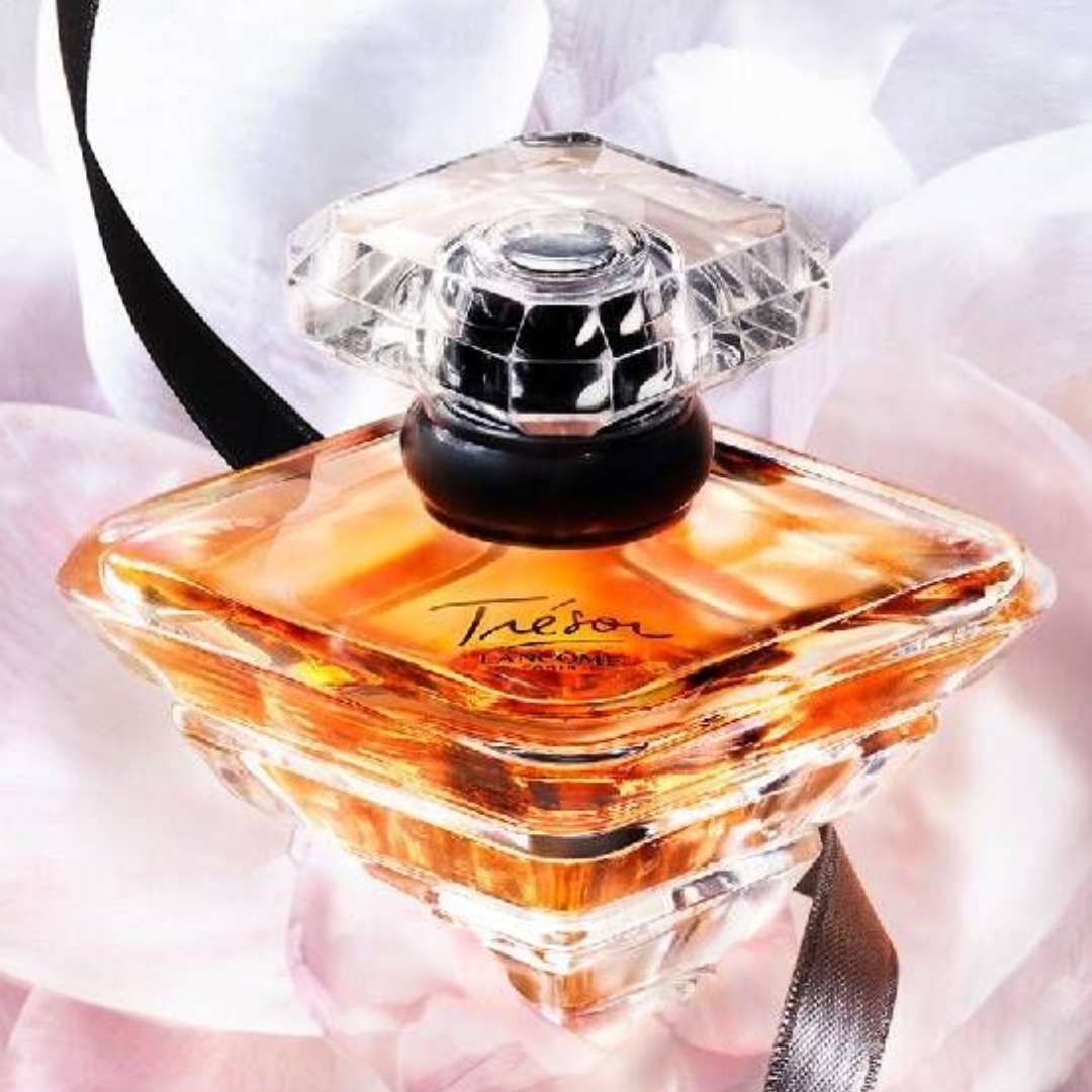 Trésor de Lancôme es una fragancia de la familia olfativa Oriental Floral para Mujeres. Las Notas de Salida son durazno, rosa, flor del albaricoquero, lila, piña, lirio de los valles, bergamota; las Notas de Corazón son rosa, iris, heliotropo, jazmín; las Notas de Fondo son durazno, chabacano, sándalo, vainilla, ámbar y almizcle. Trésor es una joya olfativa que se revela como un secreto precioso, íntimo y profundamente femenino; desde la apertura, el durazno y la piña iluminan la composición con una dulzura delicada que se funde con la frescura refinada de la bergamota, dando paso a un corazón romántico donde la rosa, la flor del albaricoquero, el lila, el iris y el jazmín florecen con elegancia envolvente, acariciados por el matiz empolvado del heliotropo y el lirio de los valles; en el fondo, la vainilla cremosa y el sándalo se abrazan al ámbar y al almizcle, creando una estela cálida, sensual y sofisticada, digna de un tesoro que celebra la feminidad eterna con delicadeza, pasión y distinción!!